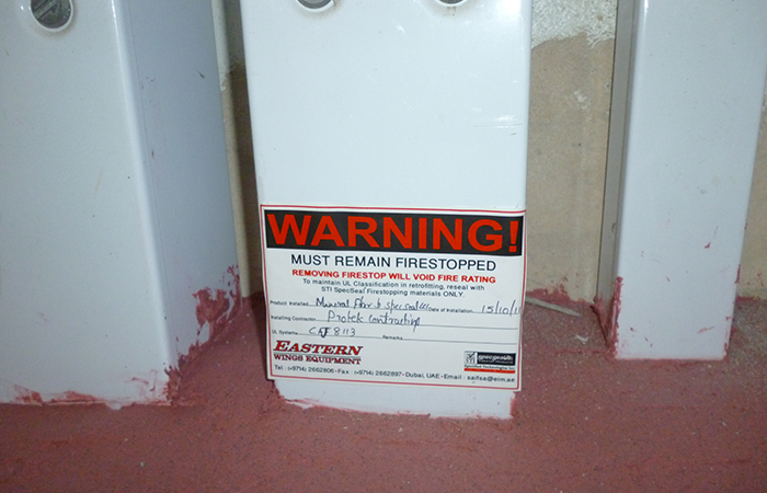 In growing emirates like Umm Al Quwain and Dubai, we provide PFP for commercial towers, data centers, and hotels. Firestop penetration seals, access panels, and fire-rated partitions are part of our core offering.